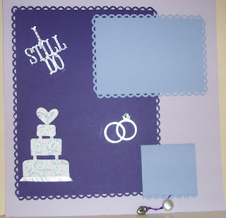 Cricut cuts: cake- Paper Doll Dress Up (altered), letters from Storybook cartridge and welded in the gypsy, rings from Potpourri cartridge